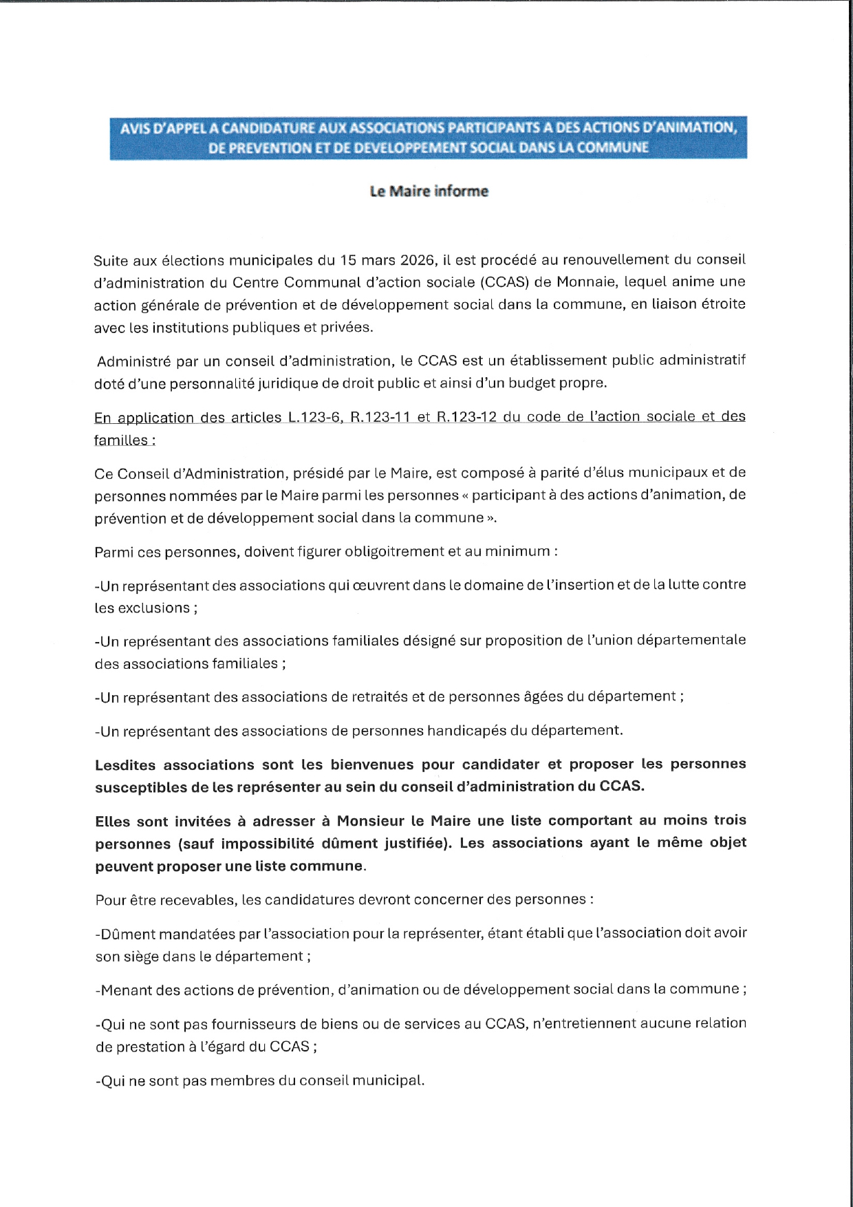 • Appel à candidature – CA CCAS