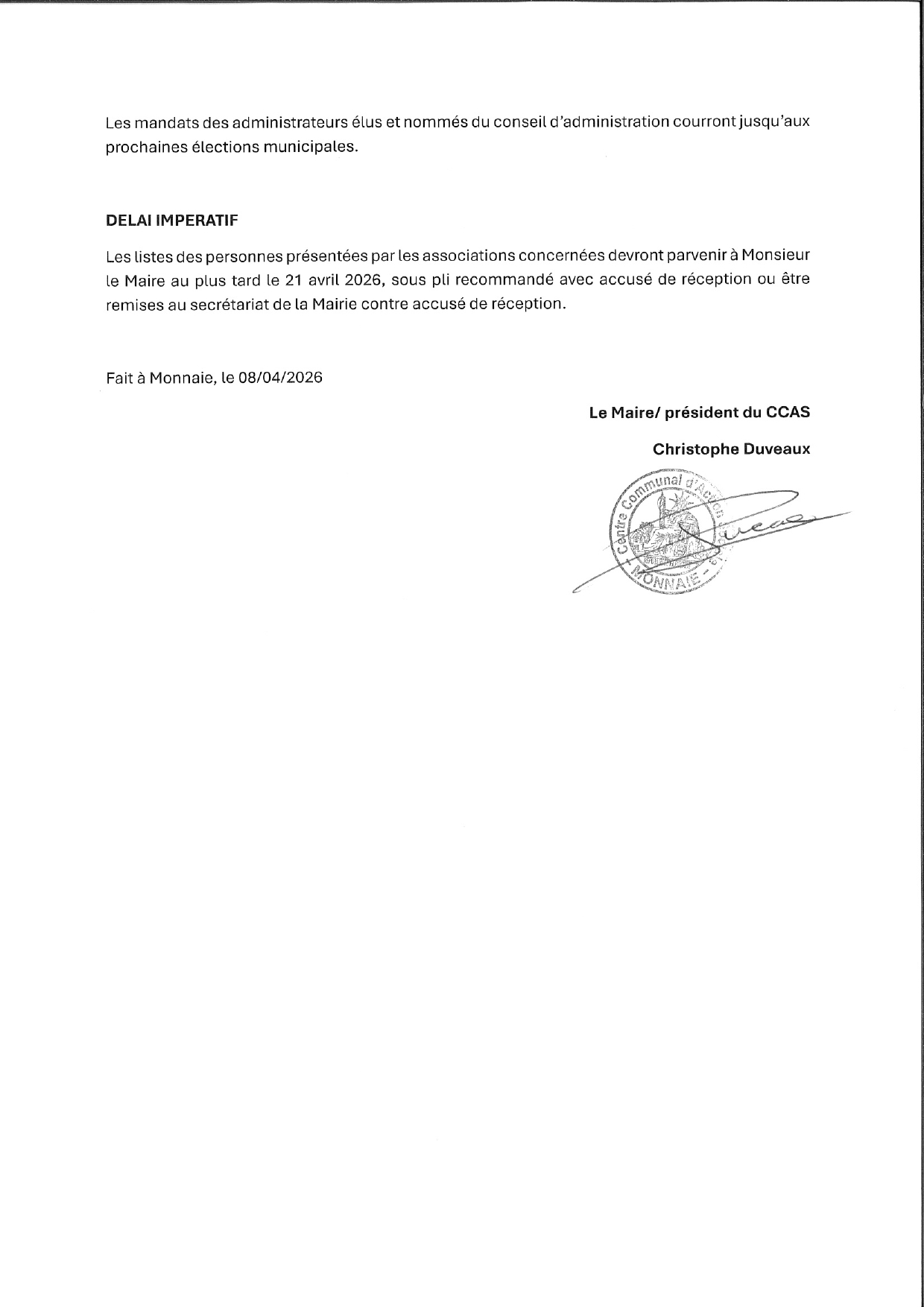 Appel à candidature - CA CCAS
