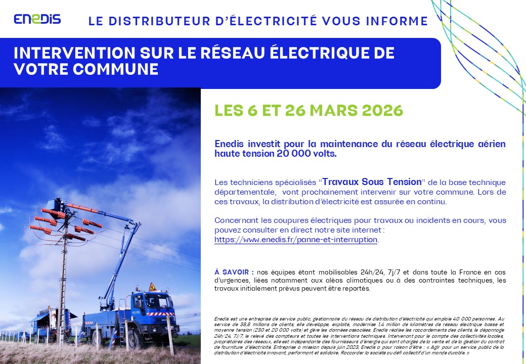 Enedis vous informe d'interventions sur le