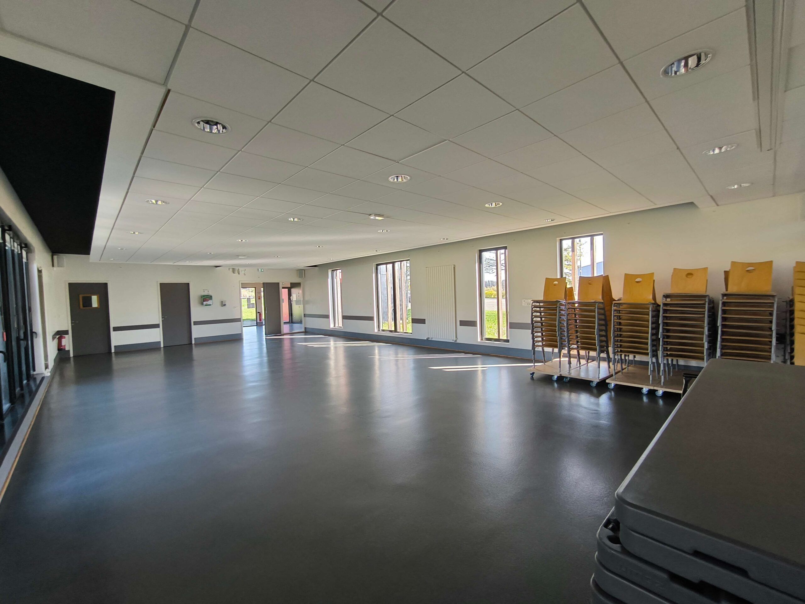 • La salle est équipée d’une cuisine, de vestiaires, de tables ainsi que de sanitaires.